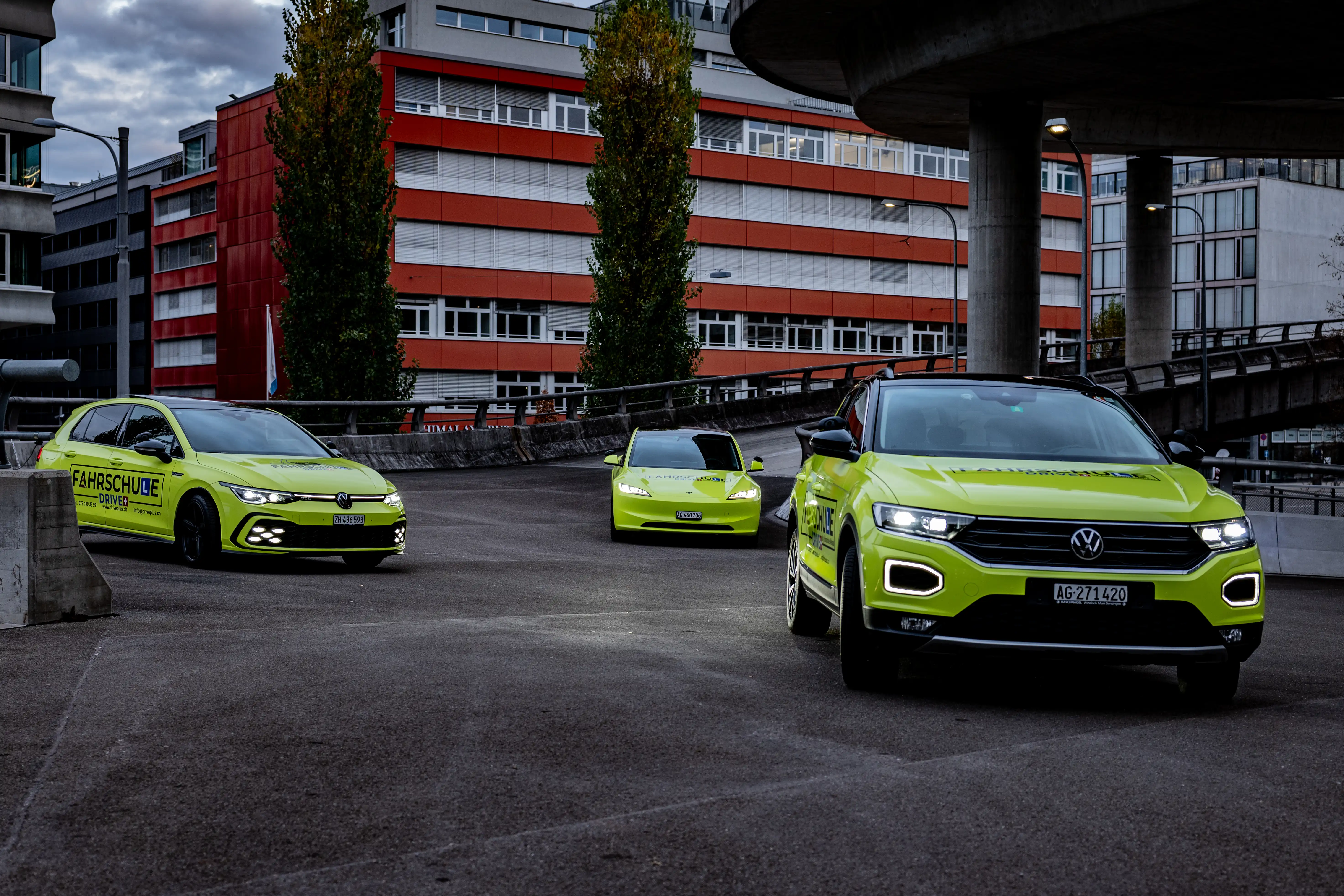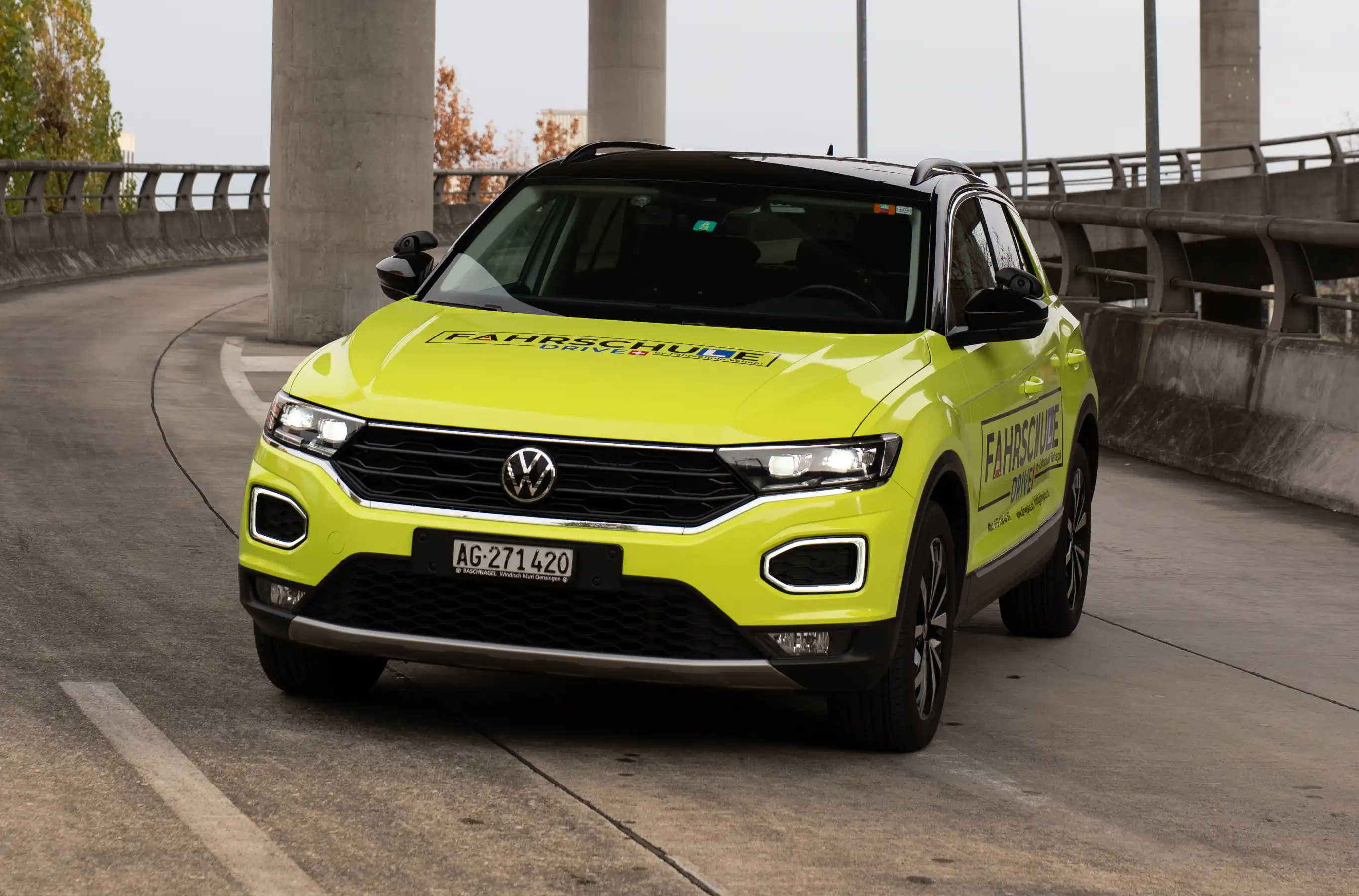 Der VW T-Roc bringt Übersicht und Komfort in die Ausbildung. Die erhöhte Sitzposition sorgt für ein sicheres Fahrgefühl und erleichtert das Einschätzen von Verkehrssituationen - ein grosser Vorteil für Fahranfänger. Auch hier steigert die auffällige Farbe das Erkannt werden im Verkehr.