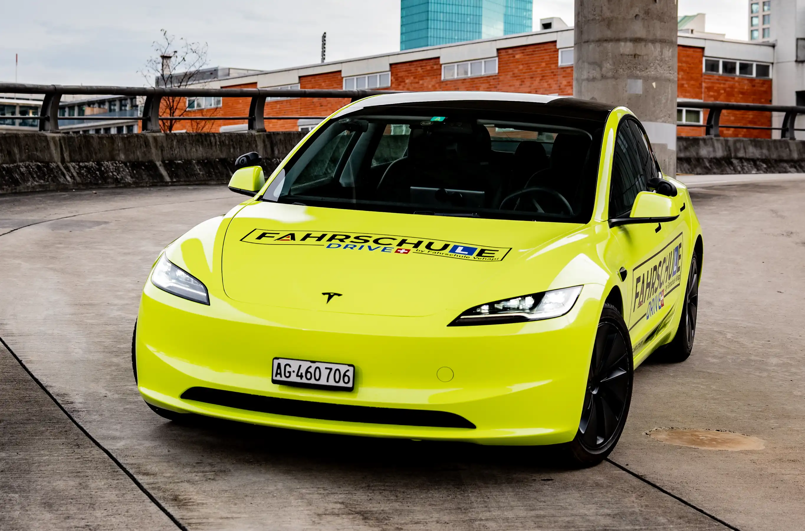 Mit unserem vollelektrischen Tesla Model 3 bieten wir eine Fahrausbildung auf einem zukunftsweisenden Fahrzeug. Die nahezu lautlose Fahrt, das minimalistische Cockpit und die innovativen Sicherheits- und Assistenzsysteme schaffen ein modernes und besonders sicheres Lernumfeld.