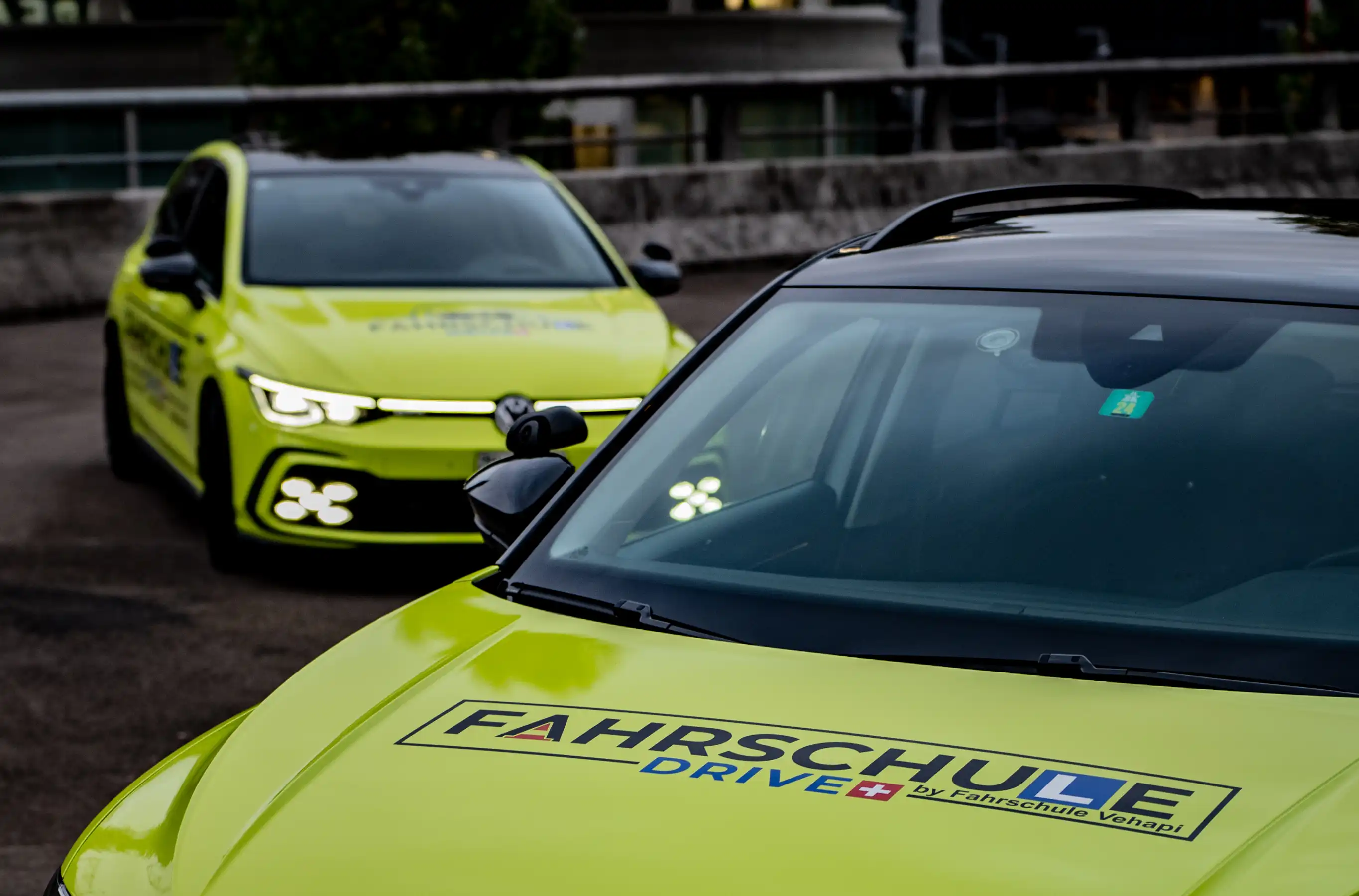 Unser giftgrüner Golf 8 GTD kombiniert sportliche Leistung mit modernster Technik. Dank zahlreicher Assistenzsysteme, starkem Handling und guter Rundumsicht eignet er sich perfekt, um Fahrschüler sicher an anspruchsvollere Fahrsituationen heranzuführen.